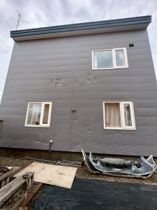 屋根からの落雪によって外壁にこれだけへこみが生じてしまう場合があります。